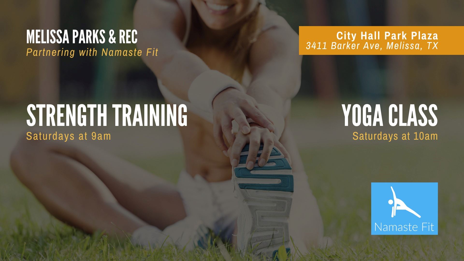 The City of Melissa Parks & Recreation is partnering with Namaste Fit to bring free outdoor strength training and yoga classes to our community.